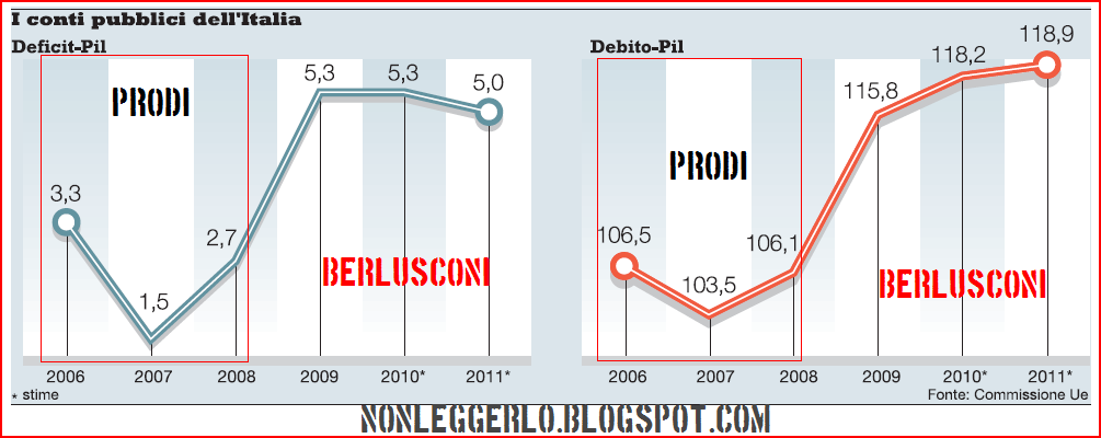 Silvietto (quello tanto simpatico) fino al mese scorso negava vigorosamente che si dovesse ricorrere ad una finanziaria aggiuntiva e che, addirittura, il suo governo stava lavorando per diminuire le tasse (lo so e' piuttosto vecchia come battuta); sosteneva che l'Italia aveva in conti in ordine e che eravamo i primi della classe (o quasi); che la crisi era solo psicologica istillata dalle opposizioni e dai giornali non governativi (ai quali gli industriali non dovevano commissionare neppure piu' la pubblicita'); invitava a spendere e spandere, ad accendere mutui ed acquistare automobili, etc...