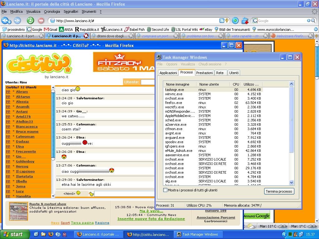 Non c'entrano la chat o window$ questa volta...bensi il problema e' di firefox...nella versione due c'e' un problema di gestione della memoria...hanno deciso di non scrivere una patch visto che a meta' 2008 esce firefox 3 ed il problema sara' risolto con la nuova versione.