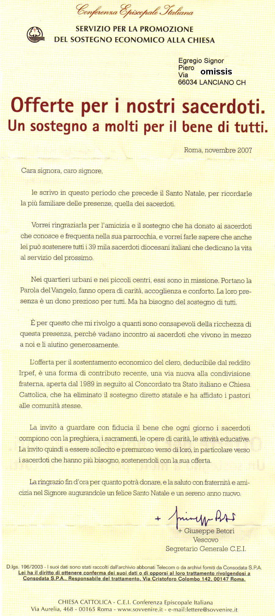 Cioè.....ma dico.......Ci rendiamo conto! Sostentamento economico del clero! Con tutto quello che ha il Vaticano perchè non ci pensa il Papocchio,magari si vende un paio di berlocchi che porta addosso......