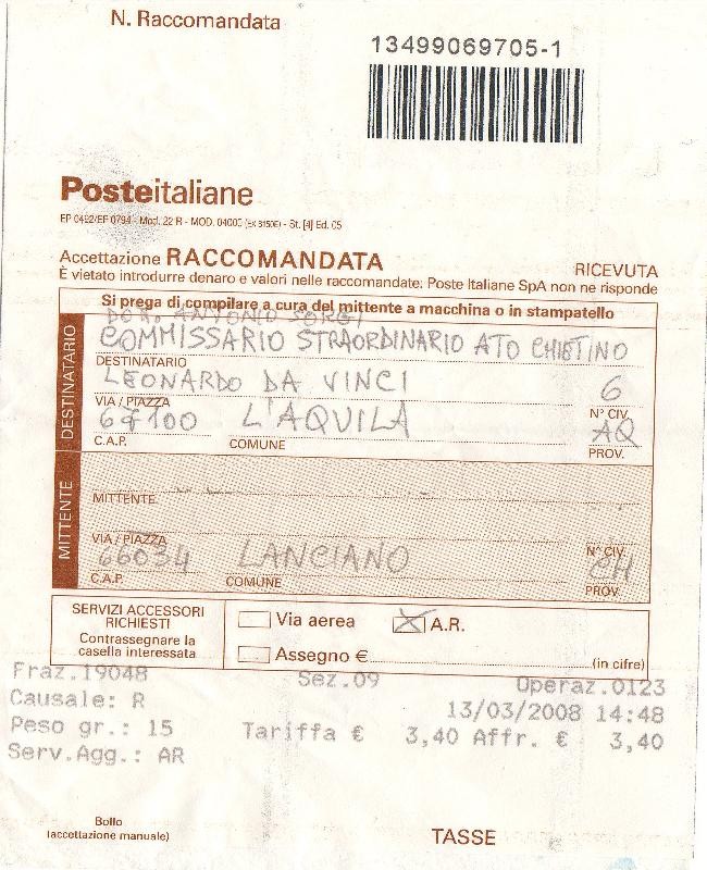 nel mezzo c'era stata una raccomandata A/R e relativa lettera per conoscenza al Presidente S.A.S.I.